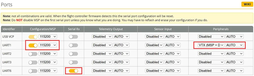 ***If you want to use DJI FPV Remote controller, Please first reflash betaflight firmware add add “SBUS” protocol support when load firmware online. And then please import defaulct factor dump file to CLI command , then change betaflight settings like following picture,no need do any hardware modification to the flight controller: