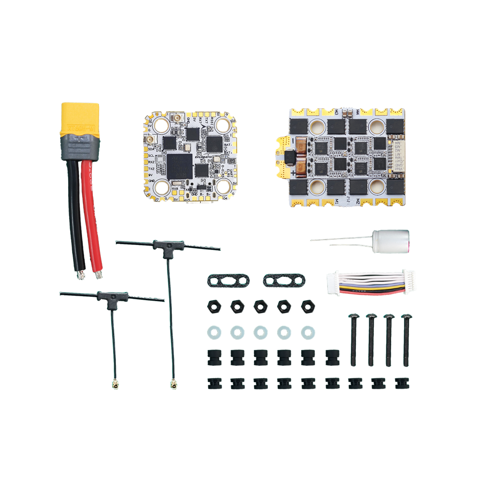 The Halo Flight Controller simplifies your build while delivering professional-grade control. Powered by an H7 processor, it integrates a Gemini true diversity ELRS receiver, using dual independent receivers for rock-solid control link stability. A TXCO (temperature-compensated crystal oscillator) maintains consistent ELRS performance even in extreme temperatures—essential for race conditions.