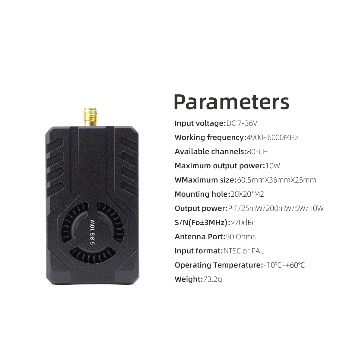 * 1 x 5.8G 10W VTX