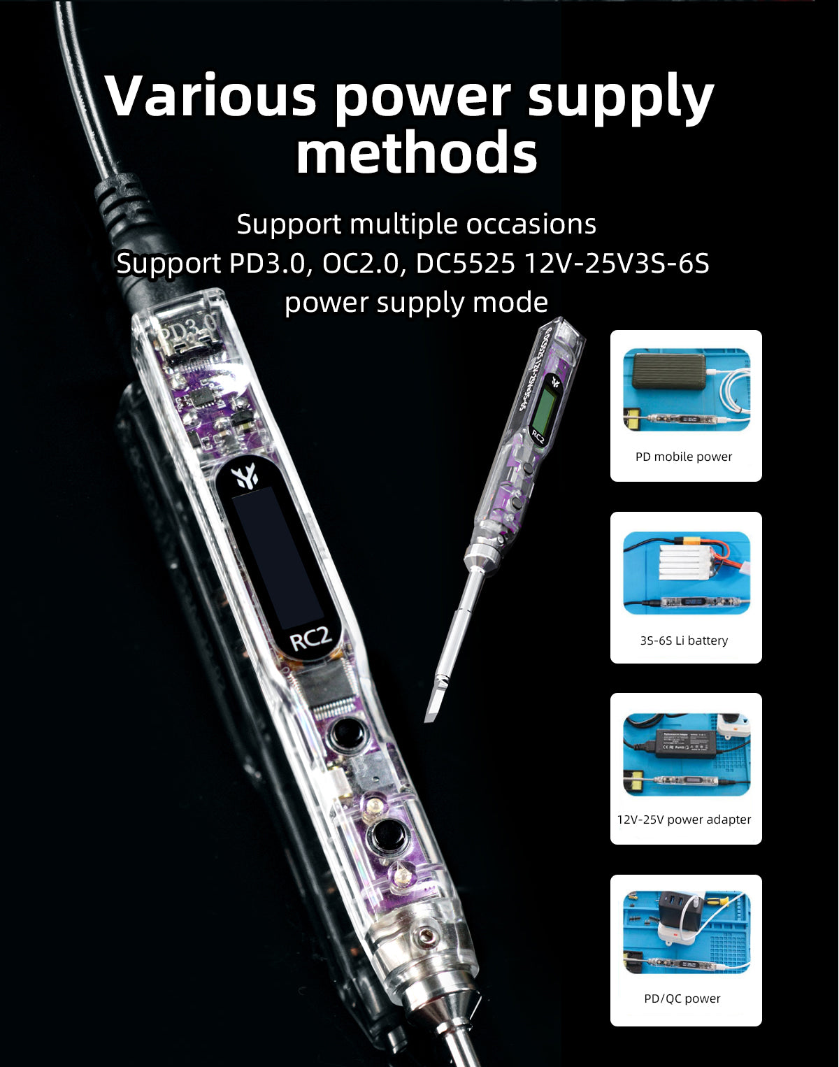-Working power supply: support PD3.0,QC2.0, DC12V-25V, 3S-6S battery.